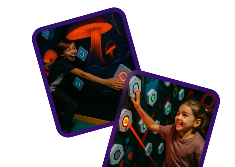 Este es un atracción divertida y dinámica que a la vez entretiene y desarrolla la agilidad, la rapidez de reacción y la atención. Es un juego activo donde los participantes compiten presionando los botones que se encienden en las paredes de una sala llena de colores.